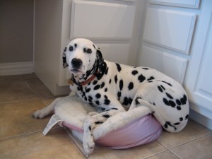 Today I had to leave our beloved twelve year old Dalmatian at the vet. He’s been ill the past three days; he can’t hold down any food. Twelve is a long life for a breed of dog whose average life span is about eight years old. Despite being so sick, this dog of mine is as happy as he can be.