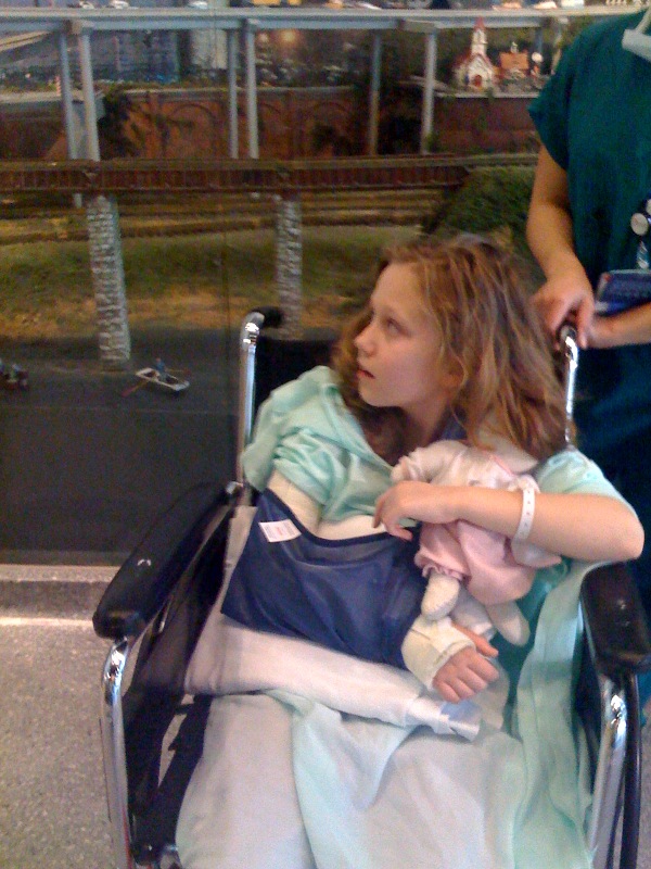 Suffice it to say it was a long night.  The local ER sent us by ambulance to the very busy Children’s hospital downtown…and, because of an overload, the orthopedic specialist sent us back home with instructions to return in the early morning for surgery.