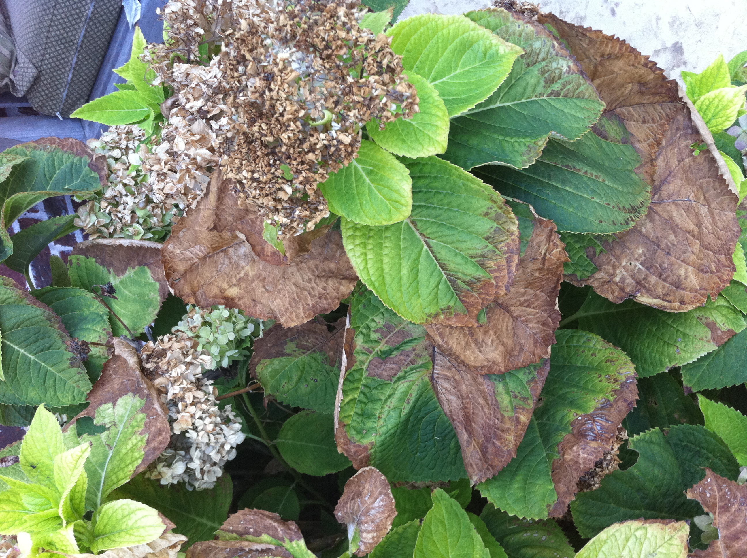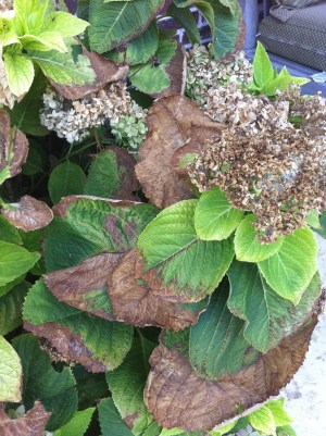 I admit it. I have a brown thumb. But I promise I didn’t cause this travesty. I didn’t do it! The only times I’ve even crossed the threshold into the back yard have been to let the dog out. (She didn’t do it, either. She’s not tall enough!)