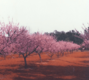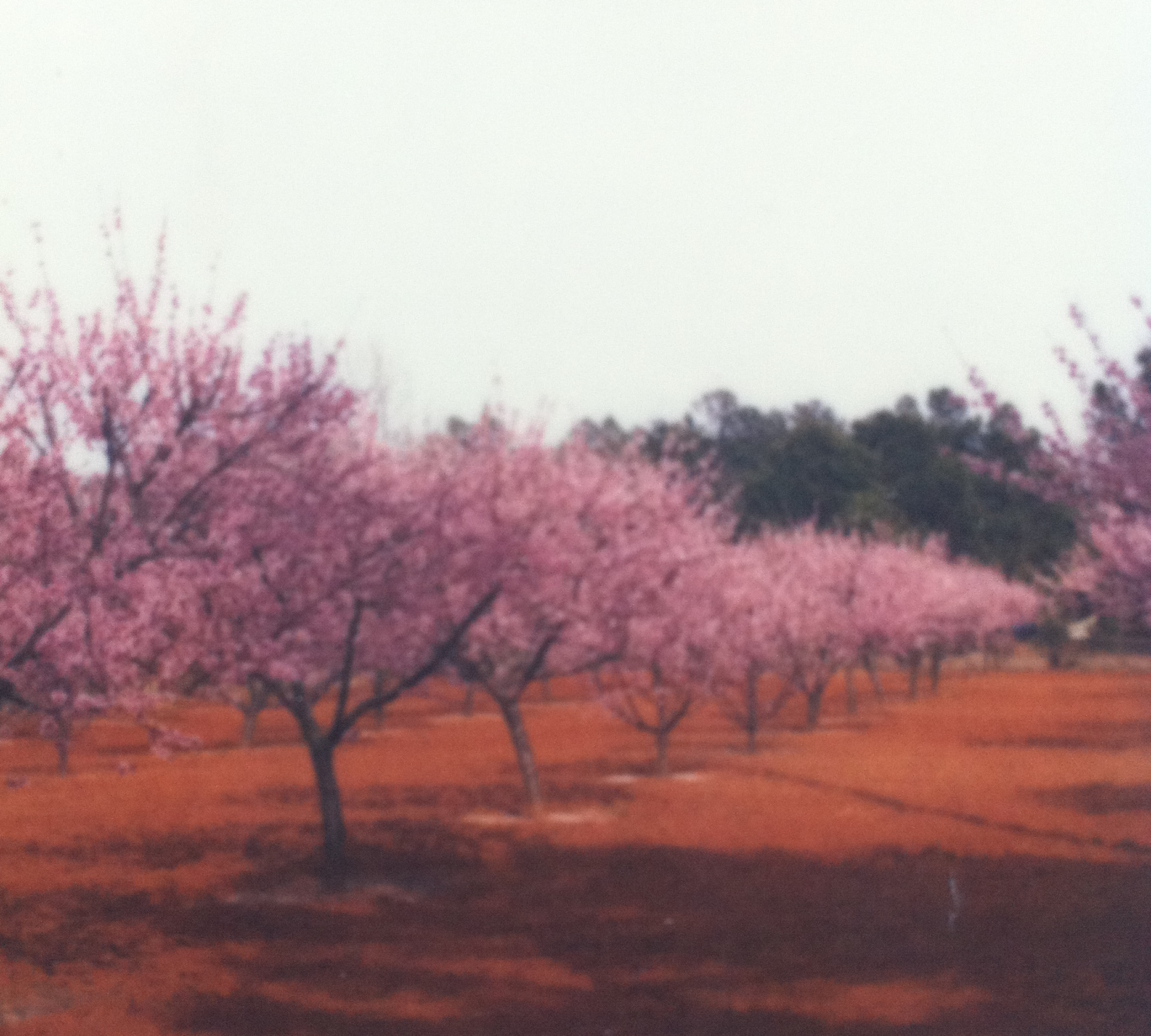 Making my trip even more poignant was the fact that this was my first time to visit Grandma at the nursing home. On our eighty mile trip there and back, the red dirt roads crisscrossing the highways reminded me of the peach orchard at their old place. I can still see the trees in full bloom, laid out in nice rows with the ground hot and red underneath. We’d play endless games of hide and seek out there in the orchard. My weeks at Grandma’s would always leave me with feet stained red.