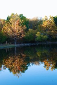 I took a lovely walk this morning. If I had thought of it, I would have brought my camera. But I didn’t…so you’ll just have to take my word for it that it was a lovely jaunt on a fall morning. However, in honor of the first day of fall, here’s a picture of a pond near my home that we took several years ago.