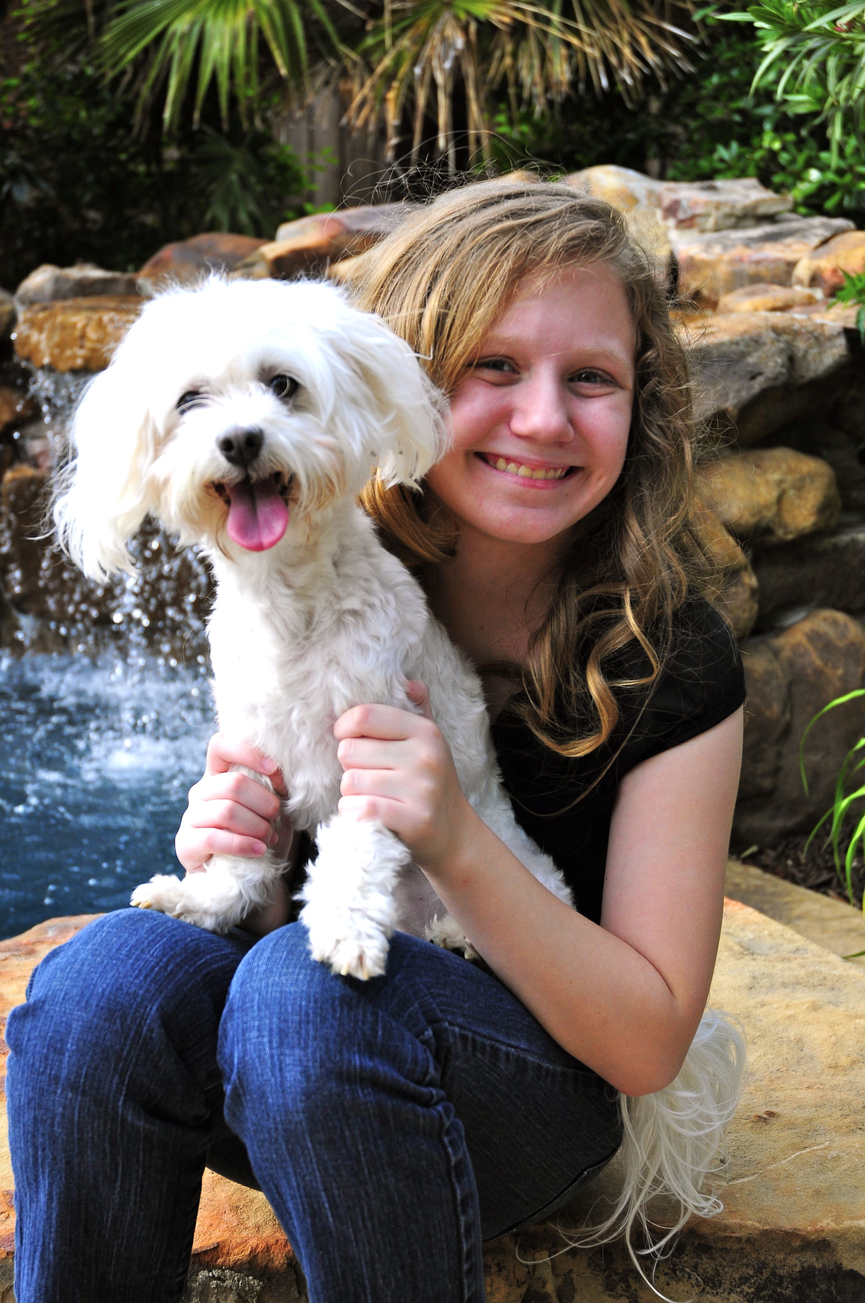 These are my girls. Aren’t they beautiful? My daughter is growing so quickly that even though this photo was taken this past summer, she’s already changed and is taller and leaner — even her face is looking more grown up. My Canine daughter, however, looks just the same as always. Too cute to ignore. When she turns those puppy dog eyes on me, I give her anything she wants. Bacon. Kix. Bacon. A belly rub. But no puppy kisses. Bleh. I can’t stand those.
