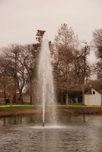 I like the softness of the water paired with the green of the grass and the stark naked trees.