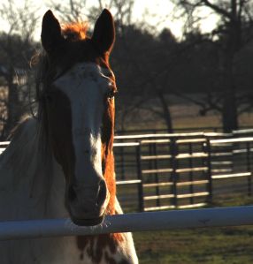 On my way home from taking my daughter to school, this horse posed for me.  I’ve been wanting to get a shot of him every time I pass, but usually he’s out in the middle of his yard, paying me no mind.  Or maybe it was a she.  I didn’t get close enough to check. Ahem.  What you can’t see in this photo is the attentiveness this horse had.  It’s like we had a connection. Even though I was parked across the country road from him and stayed inside my car with the window rolled down…he heard the camera shutter every time I pressed it.  He BLINKED at me and shook his head a little, as if to say, “Aren’t I gorgeous?”  Look at those eyelashes! I wish I had brought an apple with me to share. (I know the lighting is off.  I had accidentally left my exposure compensation setting at +5.  Ack!)