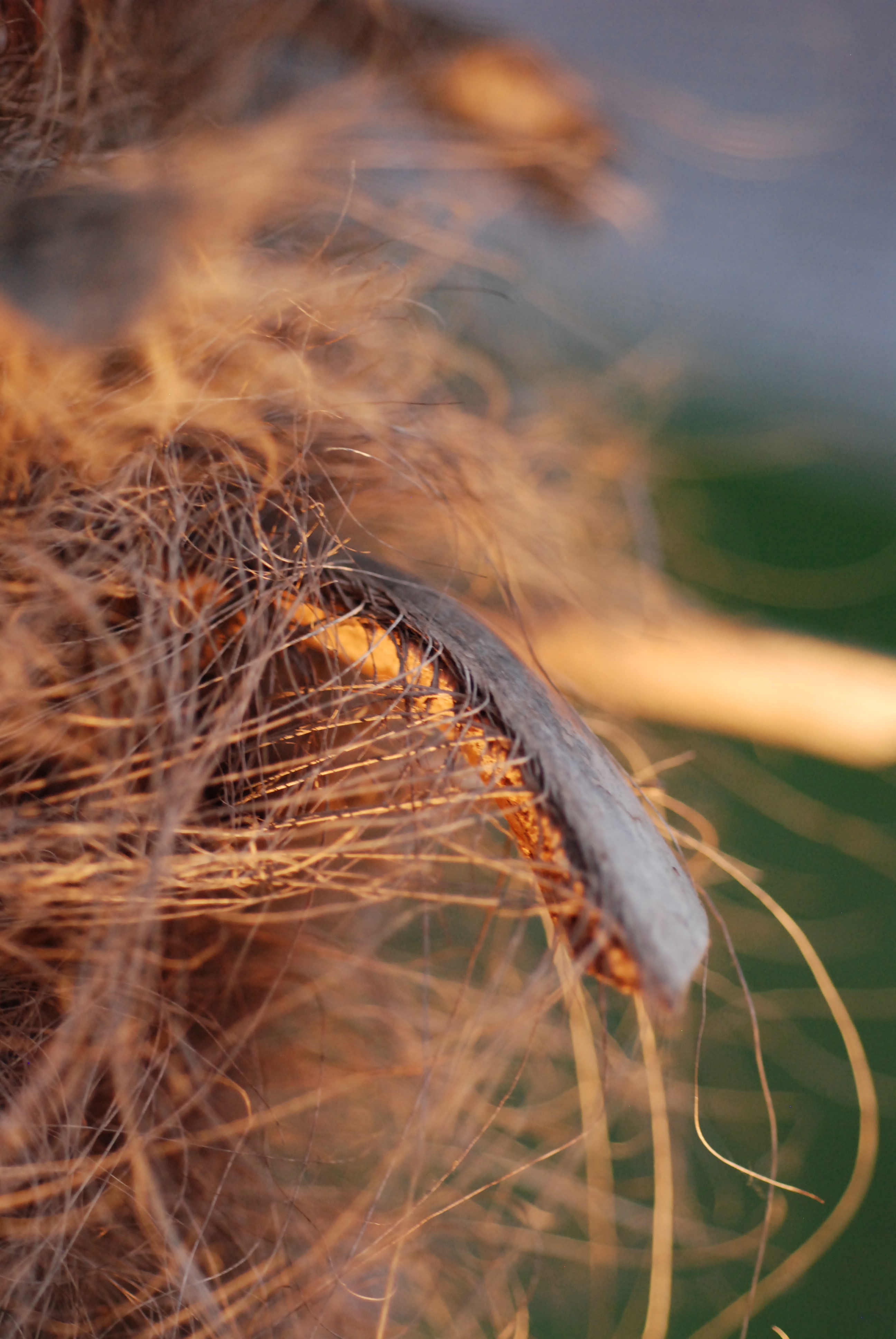 Palm tree fuzz. Or bark. Or whatever it’s called. I think it has a distinctive funkiness and disorderly orderliness that all comes together into something nice. Up close, it’s really messy. Kind of like all the drawers in my kitchen.