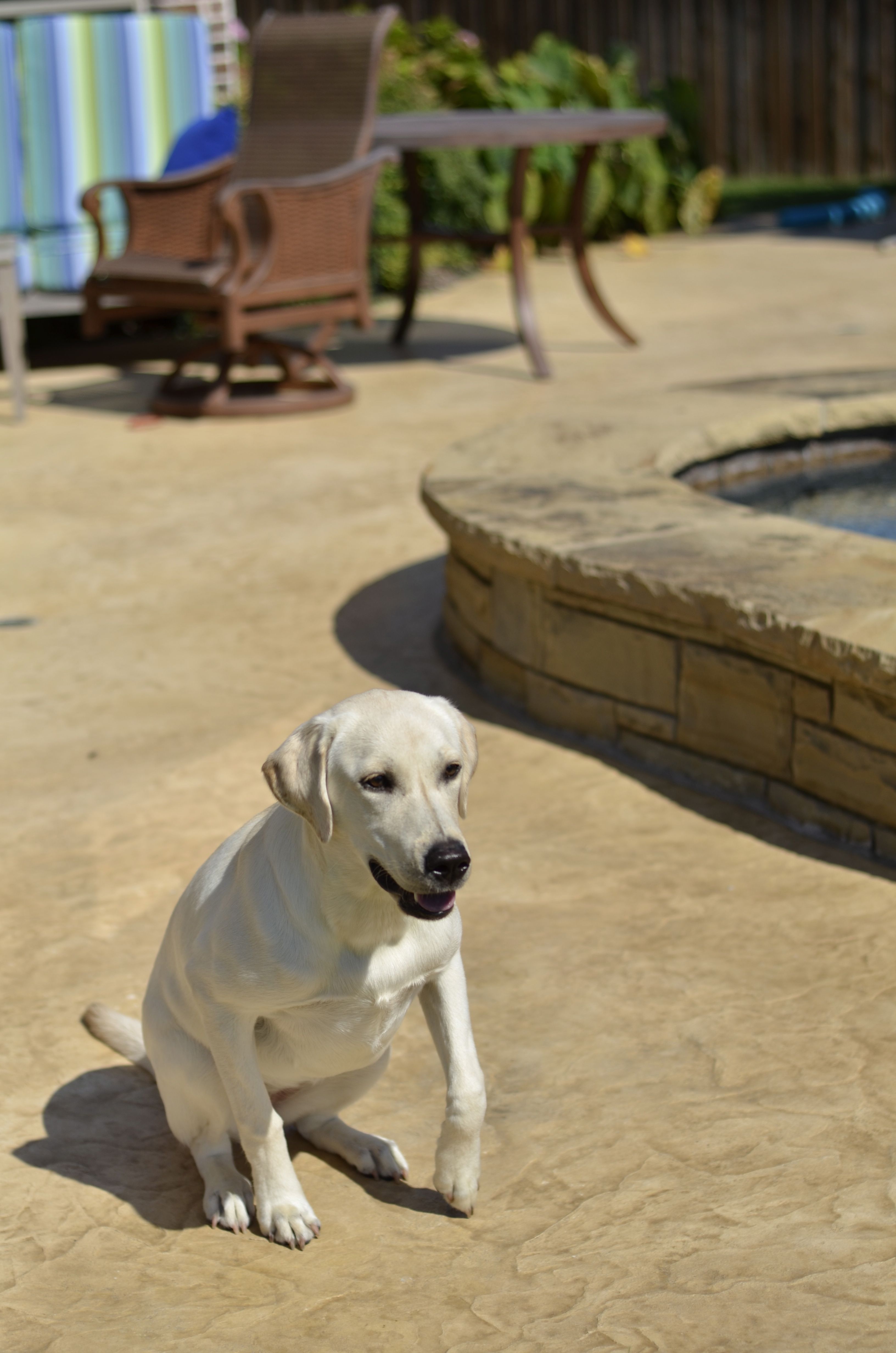 Now our yellow lab puppy Bella is at the beginning of her life, but she is acting as if she is 17 years old instead of 7 months old. Last night she began having issues with bladder incontinence. I suspect the prednisone she’s taking for puppy strangles is a factor, but I am concerned because she seems to be unable to control her bladder — even in sleep. As I was preparing lunch this afternoon she peed all over the kitchen floor without squatting or doing her usual “potty stance.” She dribbles when she walks. She leaks when she sleeps. When my husband took her outside FIVE MINUTES after I took her, she had to go so bad and so copiously that she didn’t even make it to the grass. This isn’t normal. It’s also not normal that the puppy who used to be known as Dogzilla for her extremely active personality is no longer interested in anything except sleeping and eating (and chasing the stray bunny, which she is about to do in this picture, taken five days ago before the Pee Odyssey began:)