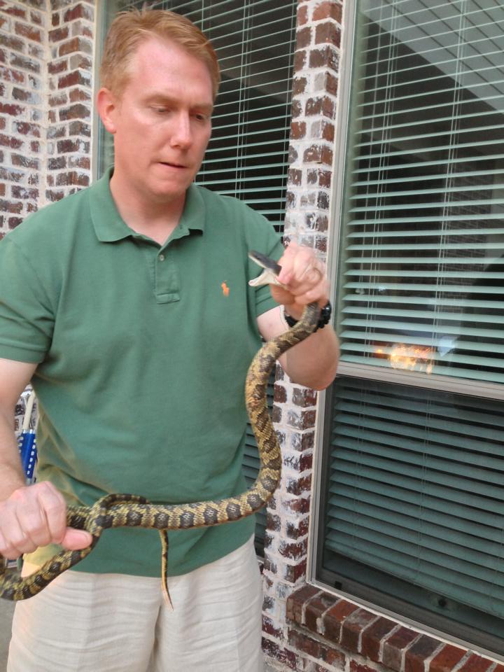 Fortunately, my husband is a snake charmer in his spare time and was able to corral the slithery beast and relegate it to the storm drain.