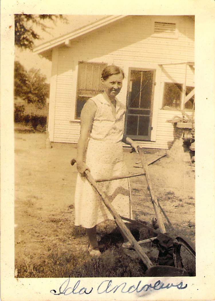 I remember when I thought people who were 35 years old were ancient. Then I thought 40-somethings were dotards. Now that I am 40-something, my perspective of “old” is not 50, or 60, or even 70. “Old” to me is anything over the age of 80. My grandmother, who has dementia, is old. My great-grandmother lived into her 90s — that was old. I will never forget the tale she told me about her daddy butchering hogs at the tree over yonder, when yonder was 85 years ago, and in her mind I was not her great-granddaughter but was instead her daughter. I look at this picture of my great-grandmother man-handling some kind of farming implement (a plow? a tiller?), in a dress, mind you, and know that when this photo was taken, she was not old.