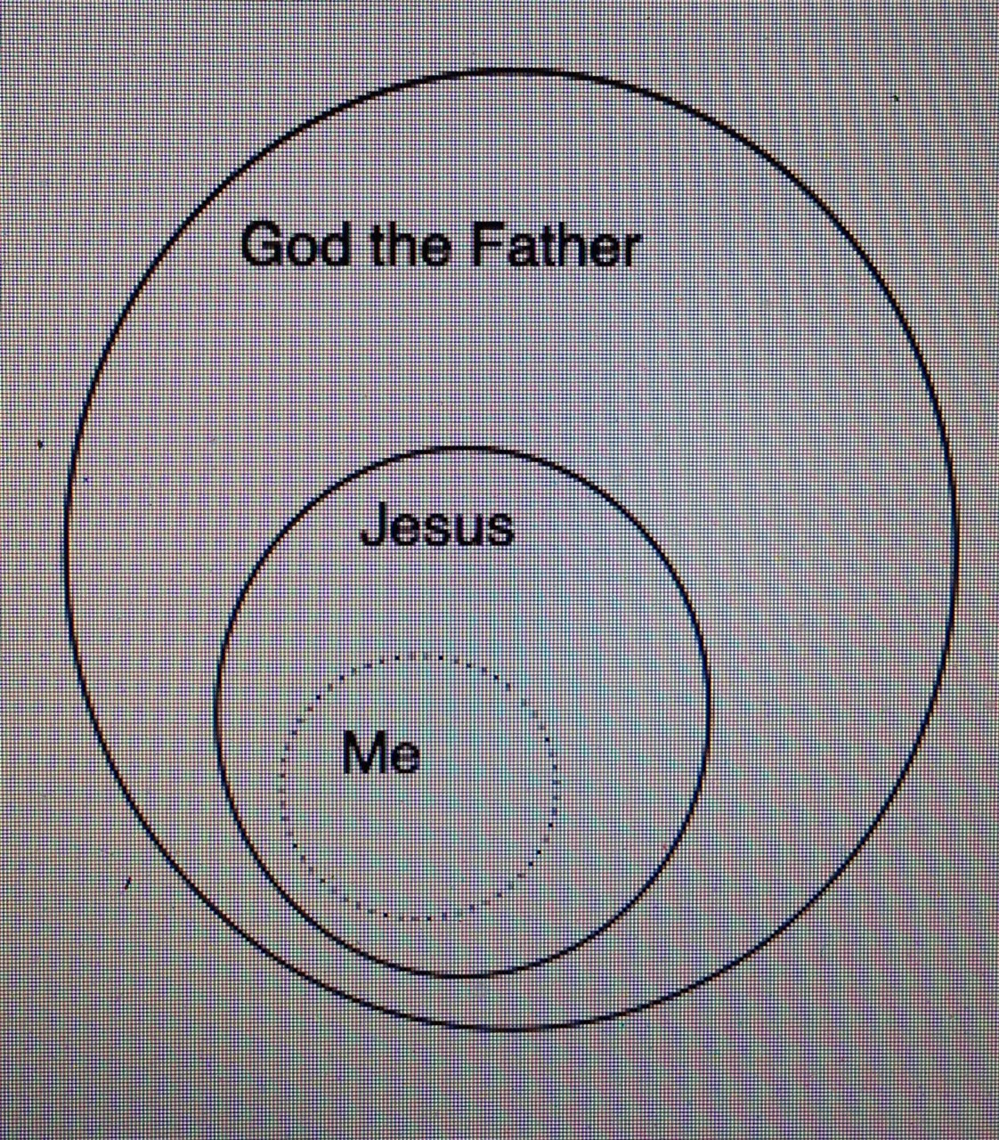 Jesus is in the Father. I am in Jesus. Jesus is in me. If I draw a Venn Diagram (told you I’m a teacher!), this is what that relationship looks like: