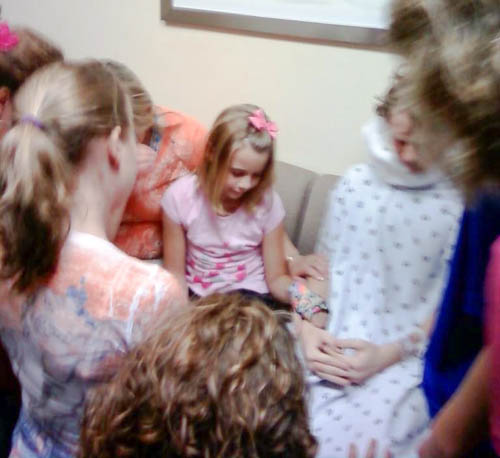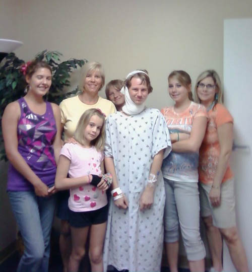 The prayer and love of friends helped CS and the family through this time. Here is a group of friends who came to support him after surgery.