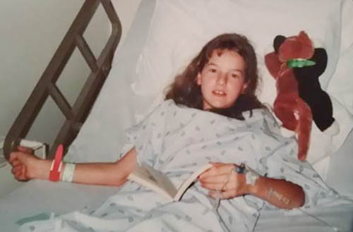 On May 12, 2000, CS’s sister Nat recovers from bone marrow harvesting. She was a sibling match for allogeneic bone marrow transplant. Yes, that is a book in her hand. Yes, it is by a British author. Even at the age of 11 she consoled herself with C.S. Lewis.