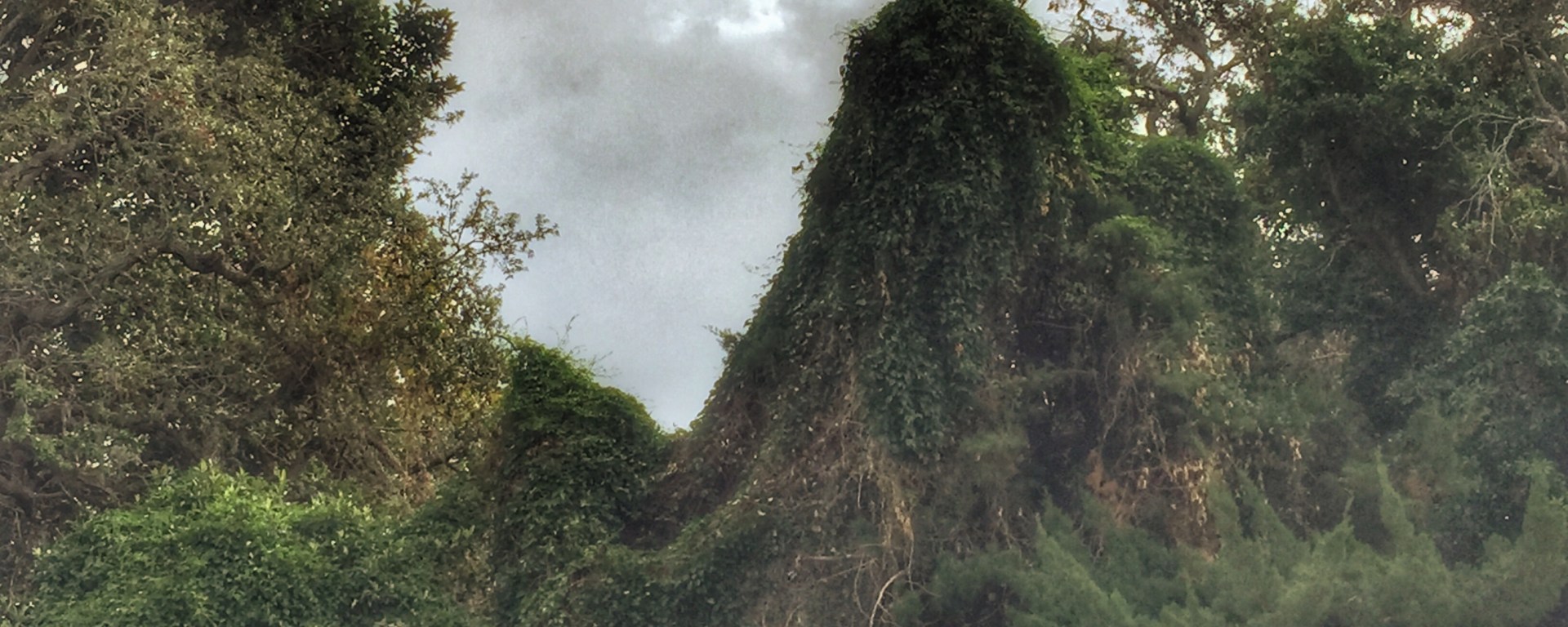 This scene greets me every Sunday when I go to church. I’ve always thought it looks like a hidden Hobbit house or The Shire might be beyond that landscape. Thick vines cover every inch and obscure what lies on the other side of that fence.